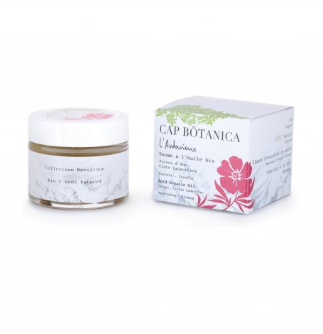 INCI: camelina sativa seed oil*, satureja montana extract*, cistus ladaniferus leaf extract*, cera alba*, anthemis nobilis flower oil*, rosmarinus officinalis extract*, helianthus annuus seed oil*, limonene*