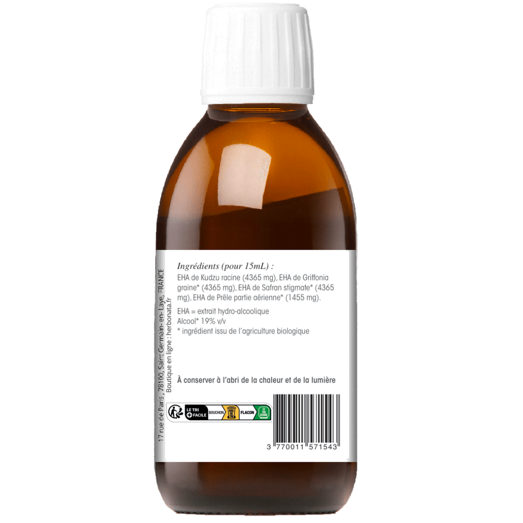 EHA de Kudzu racine *(4365 mg) ,EHA de Griffonia graine * (4365 mg), EHA de Safran stigmate*(4365 mg), EHA de Prèle partie aérienne * (1455 mg).