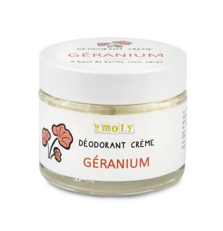 Composition du Déodorant crème Géranium : Beurre de Karité*, Huile de Coco*, Beurre de Cacao*, Arrow root*, Oxyde de Zinc (sans nanoparticule), Huile essentielle de Lavande vraie*, Huile essentielle de Géranium rosat*, Huile essentielle de Palmarosa*, Limonène**, Linalool**.