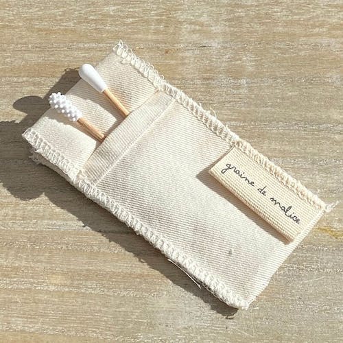 Duo coton-tige et applicateur beauté réutilisable avec pochette coton Bio