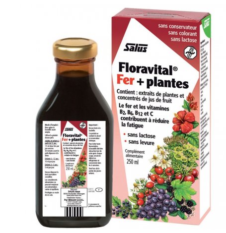 Mélange de jus de fruits concentrés (27 %) de : raisin, poire, eau, jus de groseille, cerise, mûre, carotte. Fer (gluconate de fer), extrait aqueux de cynorrhodon (Rosa canina) à 4 % de vitamine C, vitamine C (acide ascorbique), vitamine B6 (chlorhydrate de pyridoxine), vitamine B2 (riboflavine phosphate sodique), vitamine B1 (chlorhydrate de thiamine), vitamine B12 (cyanocobalamine).