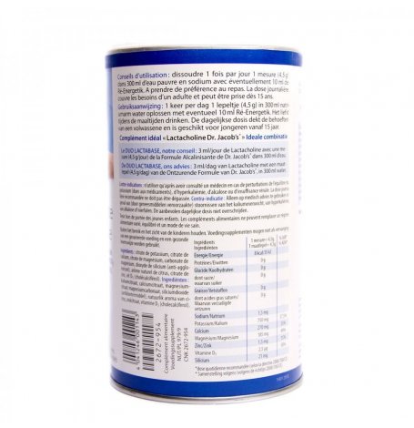 Composition : citrate de potassium, citrate de calcium, citrate de magnésium, carbonate de magnésium, acide silicique, arôme naturel de citron, citrate de zinc, vitamine D3.