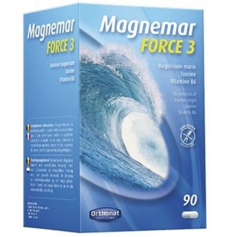 Composition de Magnemar (pour 1 gélule) : 545 mg de magnésium d'origine marine dont 300 mg de magnésium (oxyde de magnésium, hydroxyde de magnésium, carbonate de magnésium, sulfate de magnésium, chlorure de magnésium - 80% des apports de référence), pullulan (gélule), taurine (120 mg), cellulose microcristalline (agent de charge), silice colloïdale et stéarate de magnésium (antiagglomérants), vitamine B6 (2 mg soit 142,9% des apports de référence).