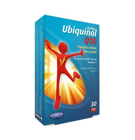 Composition (1 gélule : Huile vierge de graines de Lin - Oméga 3 (agent de charge), Gélatine (gélule), Ubiquinol (100 mg), Glycérol (humectant de la gélule), Vitamine E (acétatede d-alpha-tocophéryle 12 mg soit 100 % AR), Eau (humectant de la gélule), Silice colloïdale (stabilisant), Oxyde de fer rouge (colorant de la gélule).