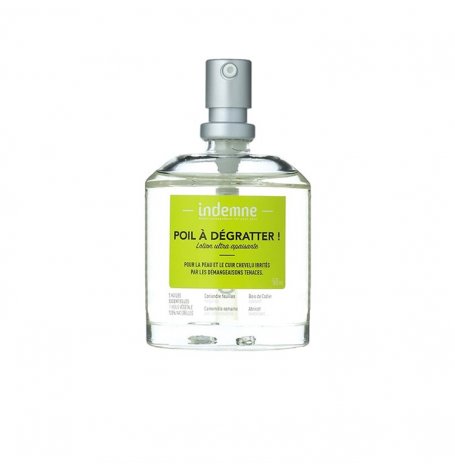 Composition de la Lotion Poil à dégratter ! : Huile d'ester, Huile d'Abricot, Squalane, Huiles essentielles de Genévrier cade, de Coriandre et de Camomille romaine, Oxyde de dioctyle, Alcool laurylique, Tocophérol, Parfum, Linalol.