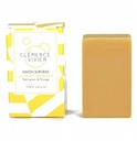 Composition du savon Le Saint-Bernard : huiles de Karité*, de Coco*, d'Olive*, de Tournesol*, de Ricin*, huiles essentielles d'Orange douce et de Petit Grain Bigaradier, Curcuma*, glycérine.