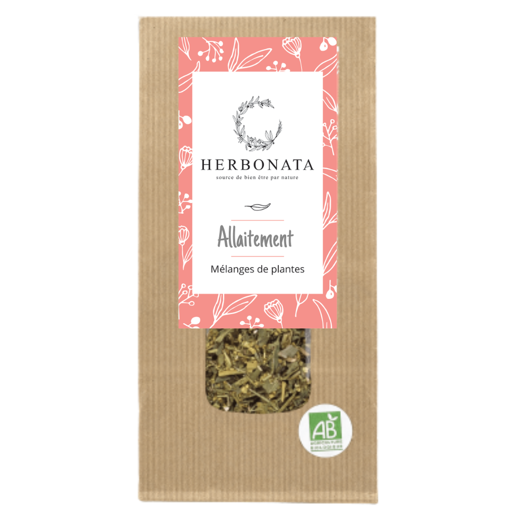 Composition de la tisane Allaitement : Carvi (semences), Fenouil (semences), Fenugrec (semences), Lamier blanc, Verveine ordorante (feuilles), Bleuet rose.